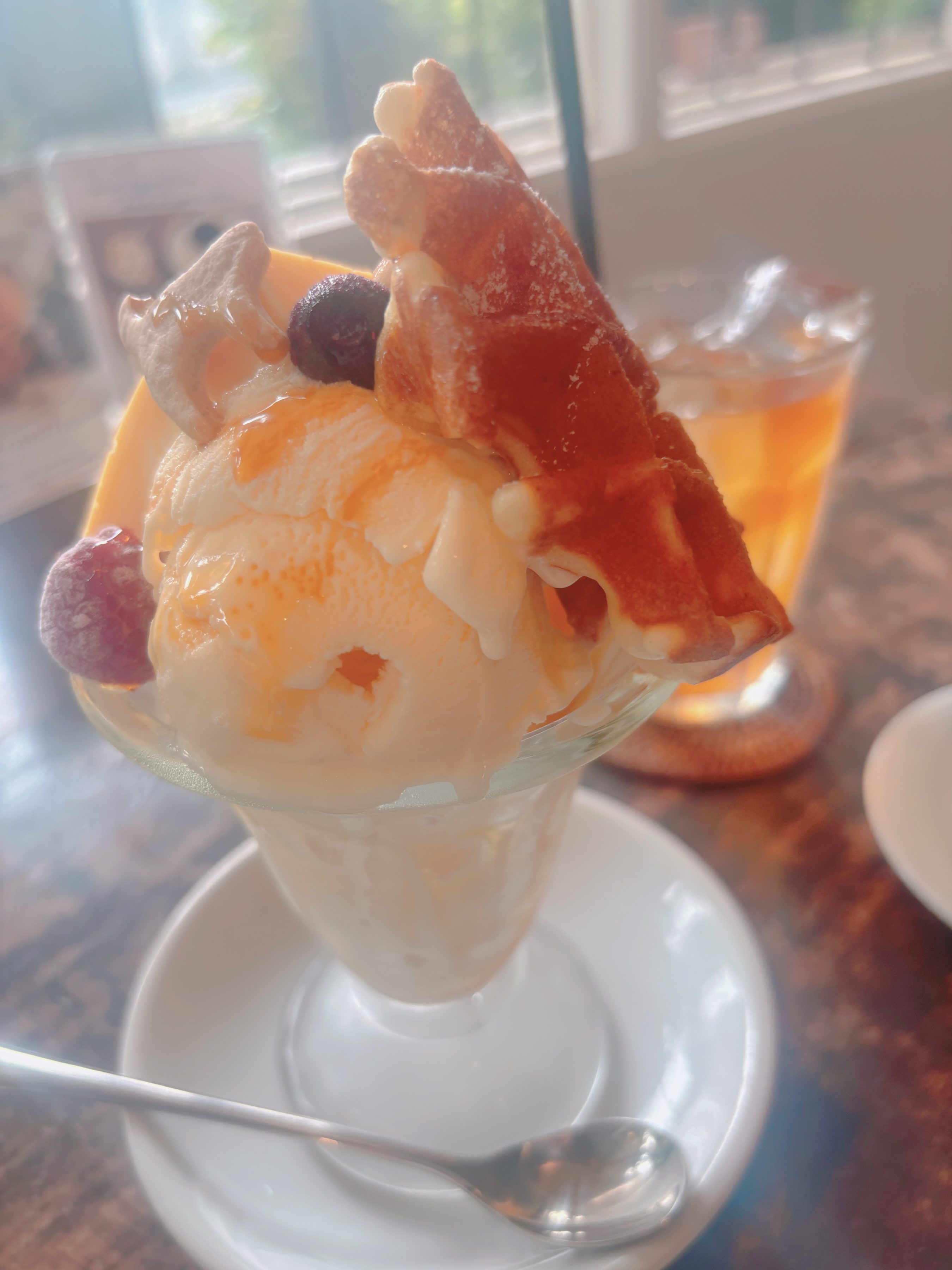 近くのカフェでお茶。可愛い雰囲気の良いお店で、パフェに刺さっていたワッフルが美味かった。焼きたてのサクもちワッフルって良いよな。しっかり観光地値段だったのは可愛くない。
