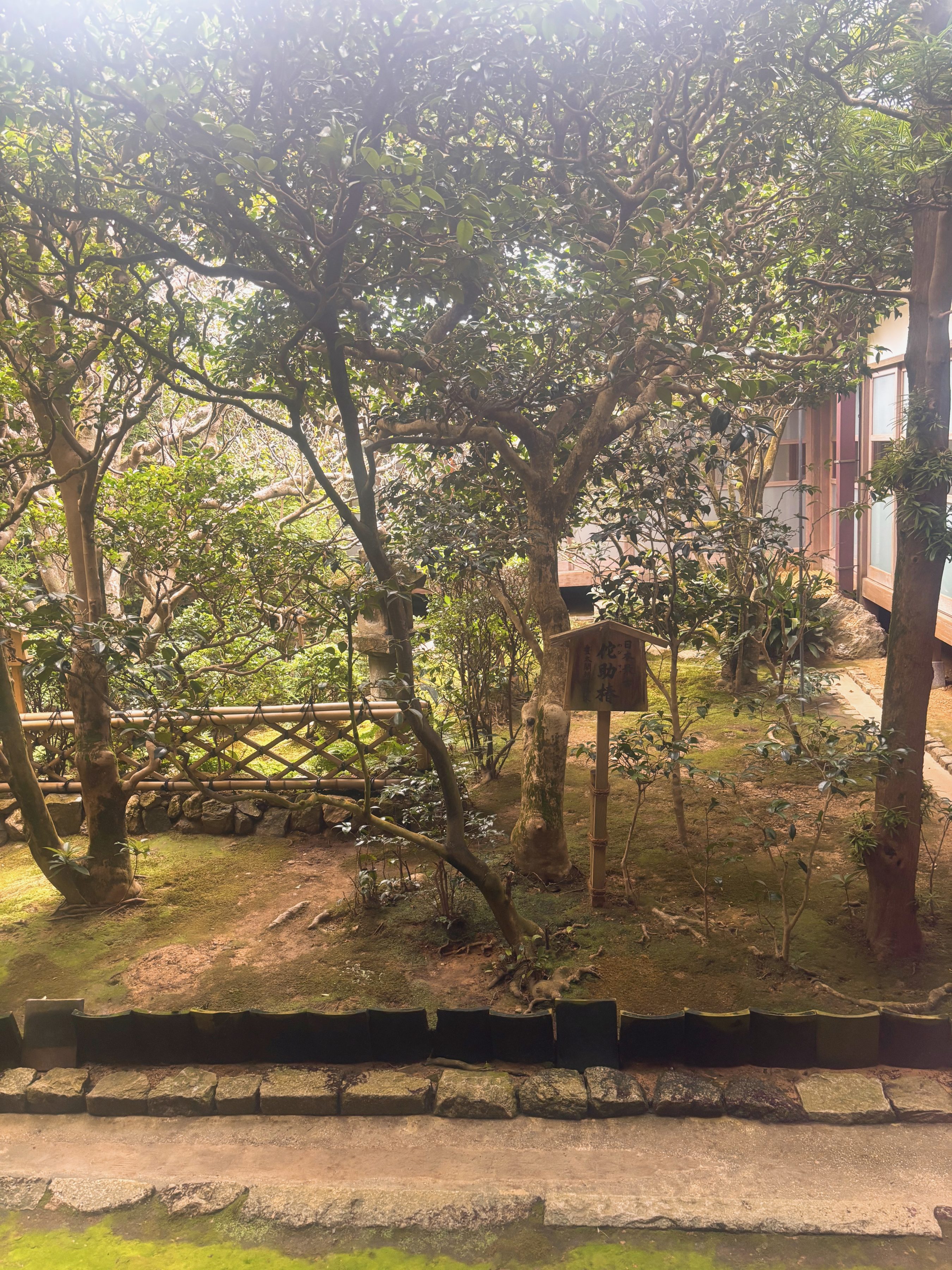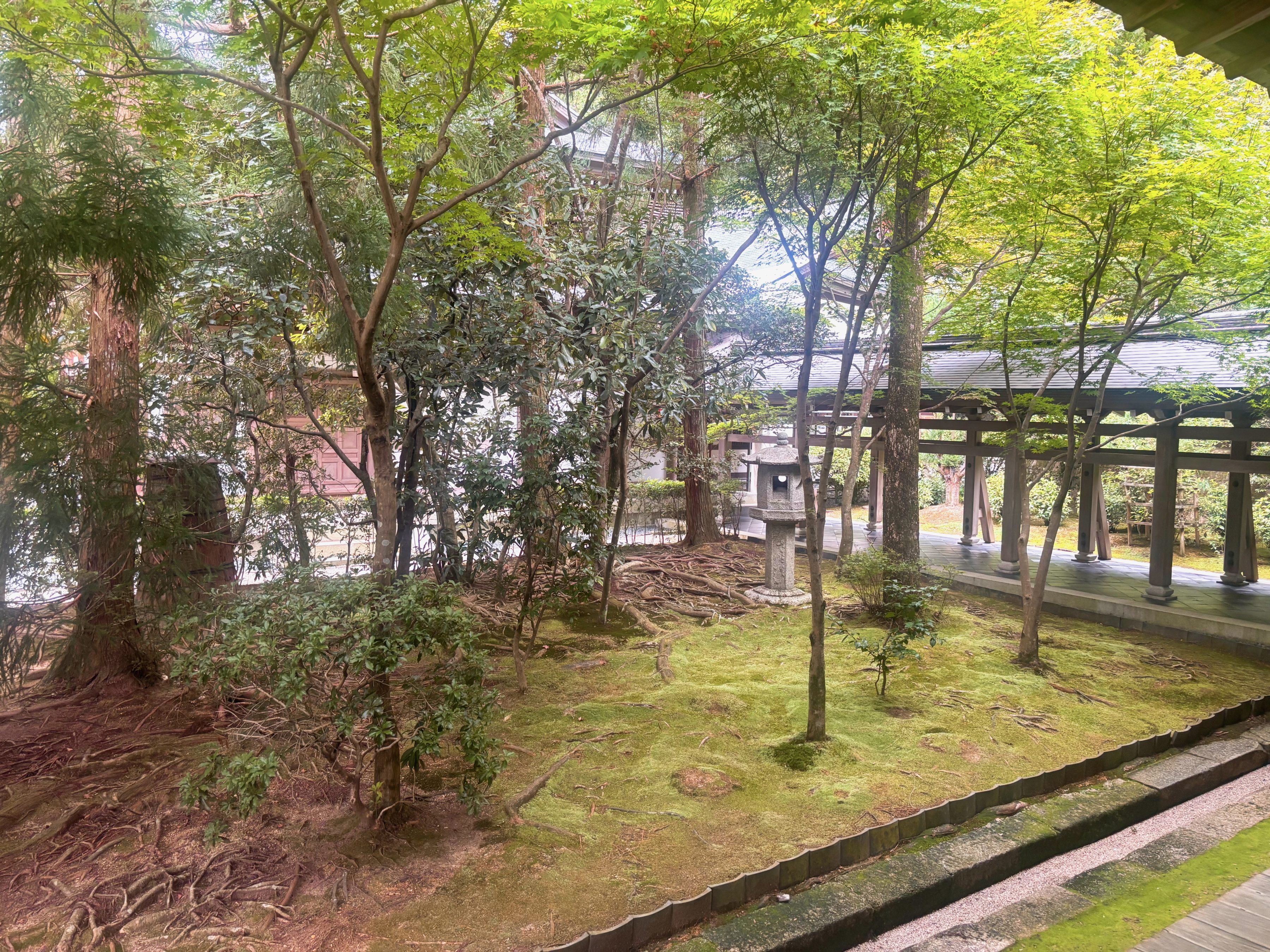 方丈から見えるお庭。ここを眺めながら霊光殿へ。足利歴代将軍と石清水八幡宮から移された徳川家康の像が安置されている。