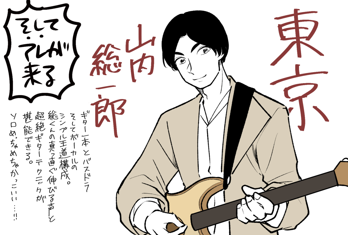 総くんは「日常生活がギターみたいに上手くできたらいいのに」「ギターを弾くように歌えたらいいのに」と言っていたようです。うん。なるほどな。山内総一郎……