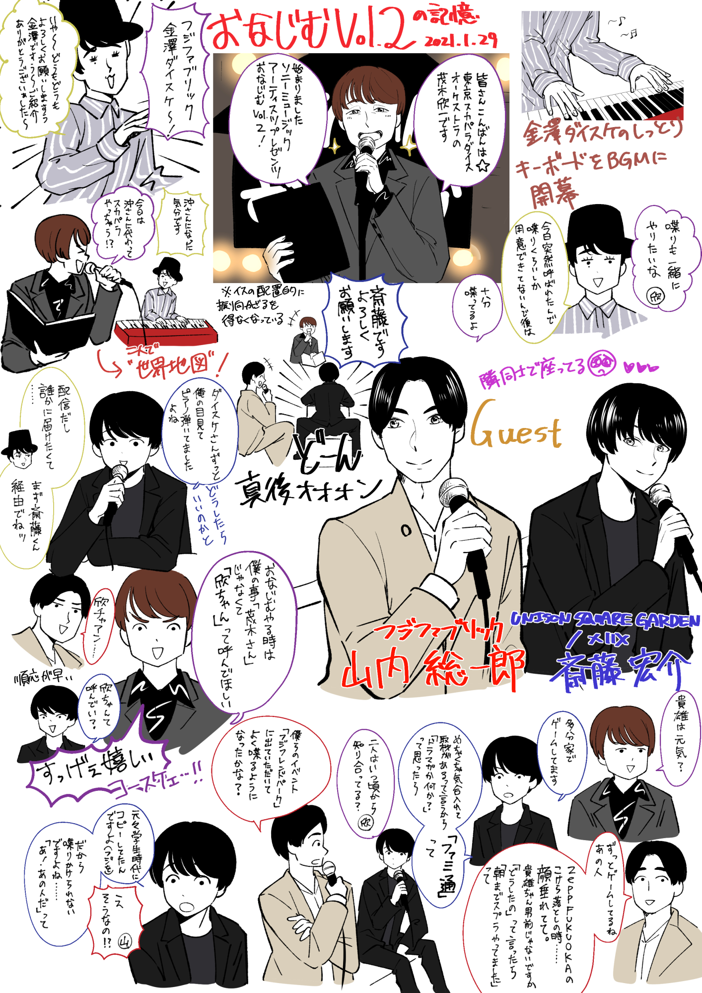 推しバンドのフジファブリックのギターボーカル山内総一郎と推しバンドのUNISON SQUARE GARDENのギターボーカル斎藤宏介が共演する。二人がメインゲストで。