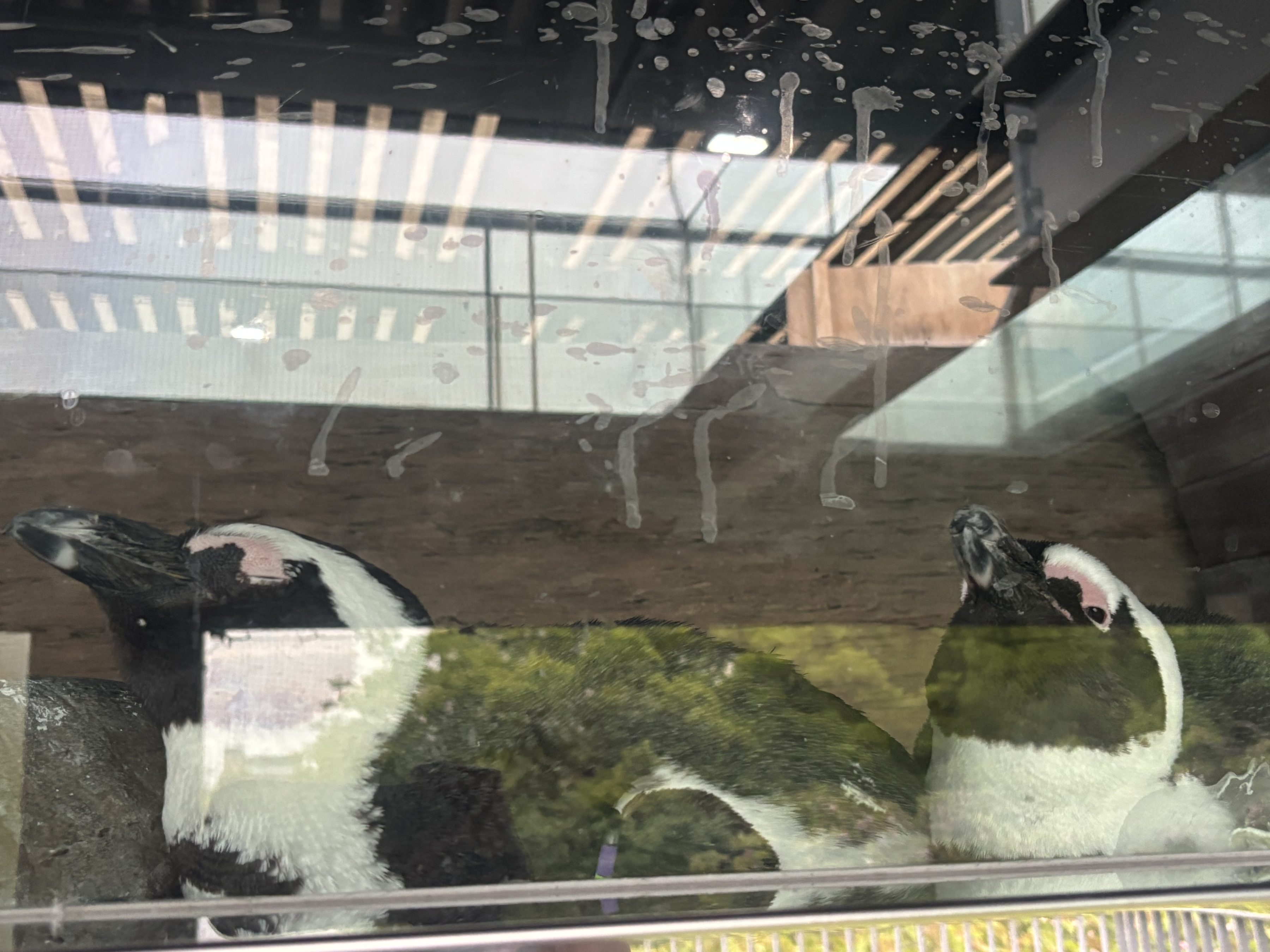 眠そうなペンギン。みんなこんな状態だった。一匹だけお客さんのスカーフを一生懸命追いかけている子がいた。