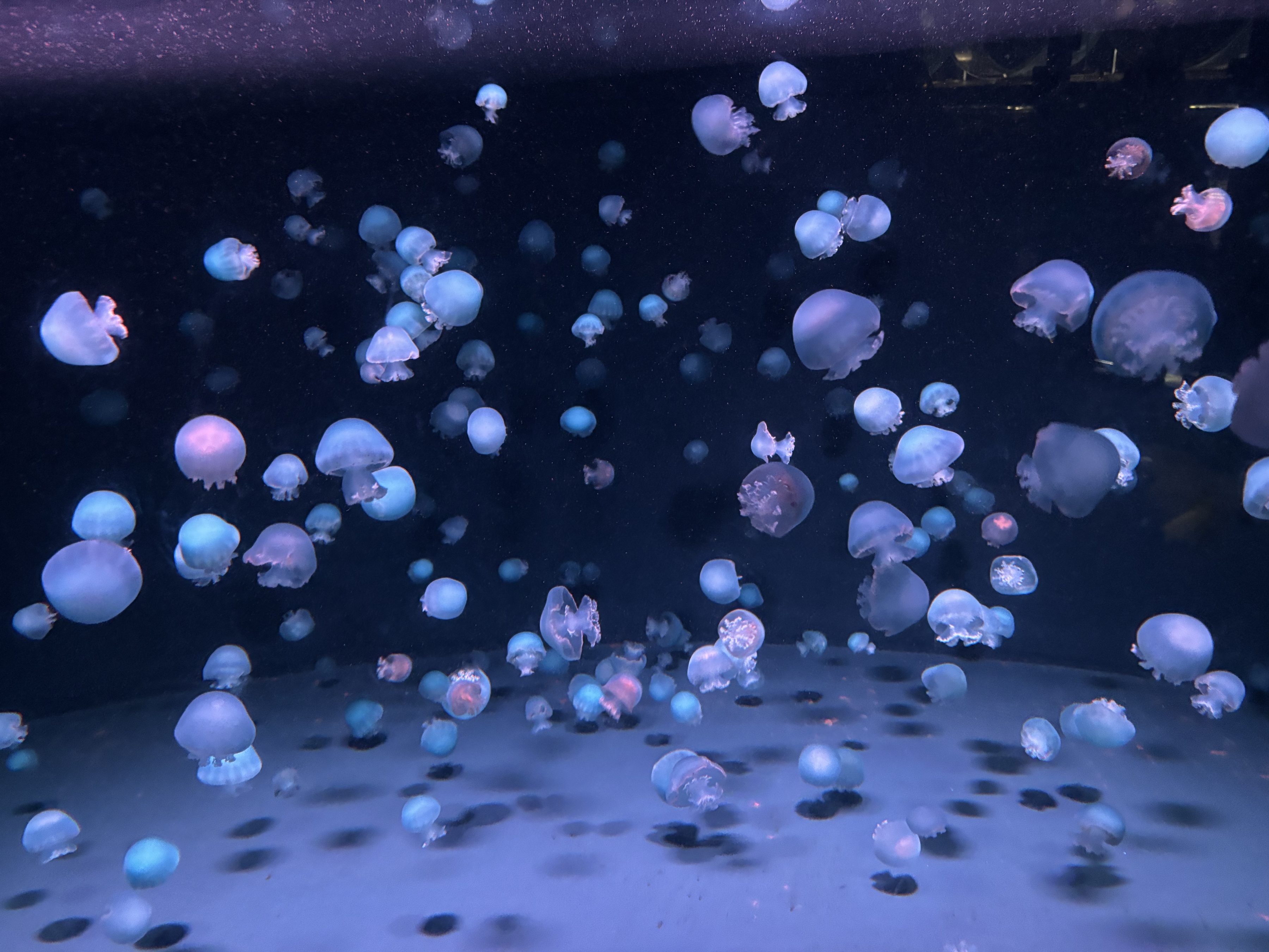 クラゲの種類がやたらと豊富。約30種5000匹展示しているそうだ。ミズクラゲの成長の過程の展示が面白かった。