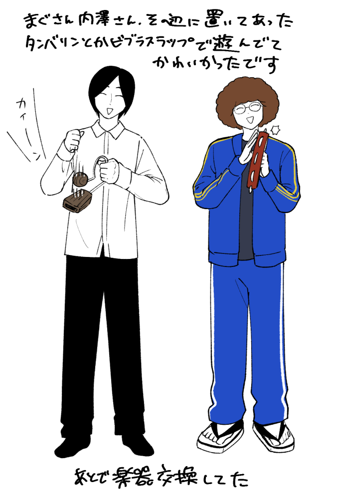 - 鮪「呼んでくれてどうもありがとう」内澤「今日は繋がってくれてどうもありがとう」と歌詞変え。こういうの大好き。
