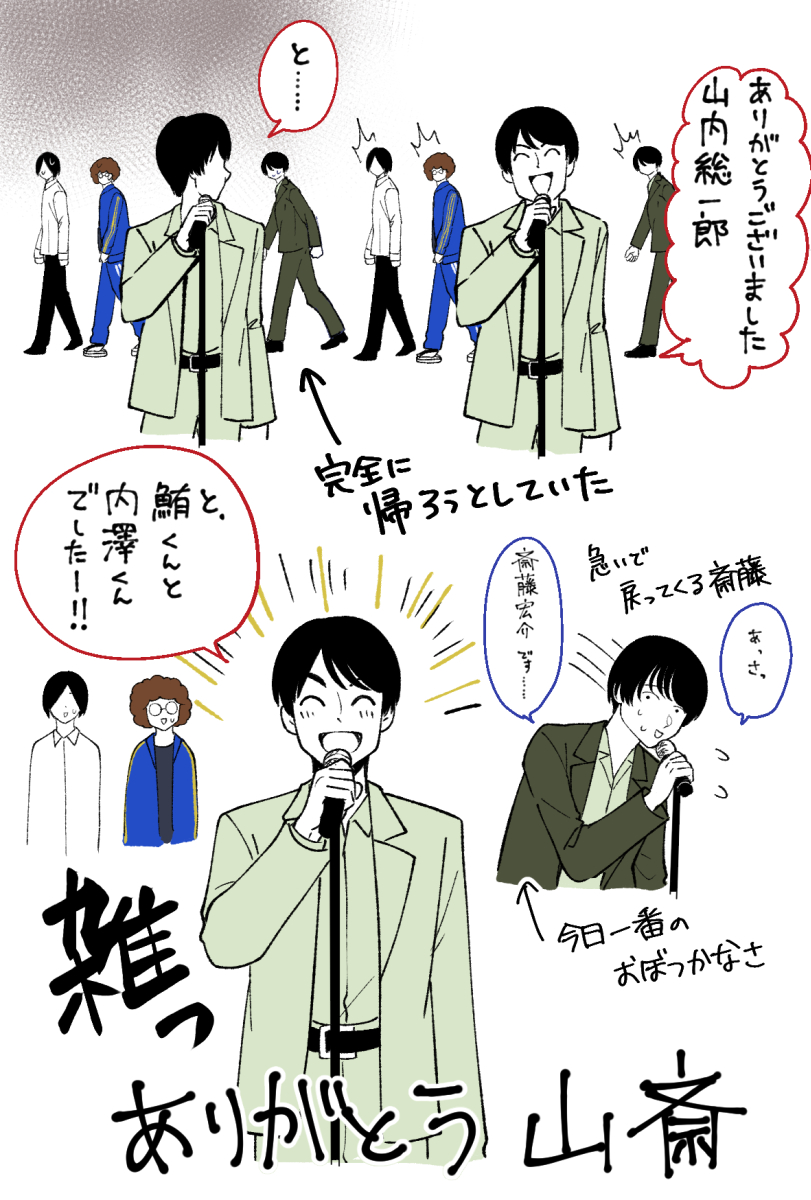 - 総くんが歌ってるとき斎藤さんうんうんリズム取っててかわいかった。