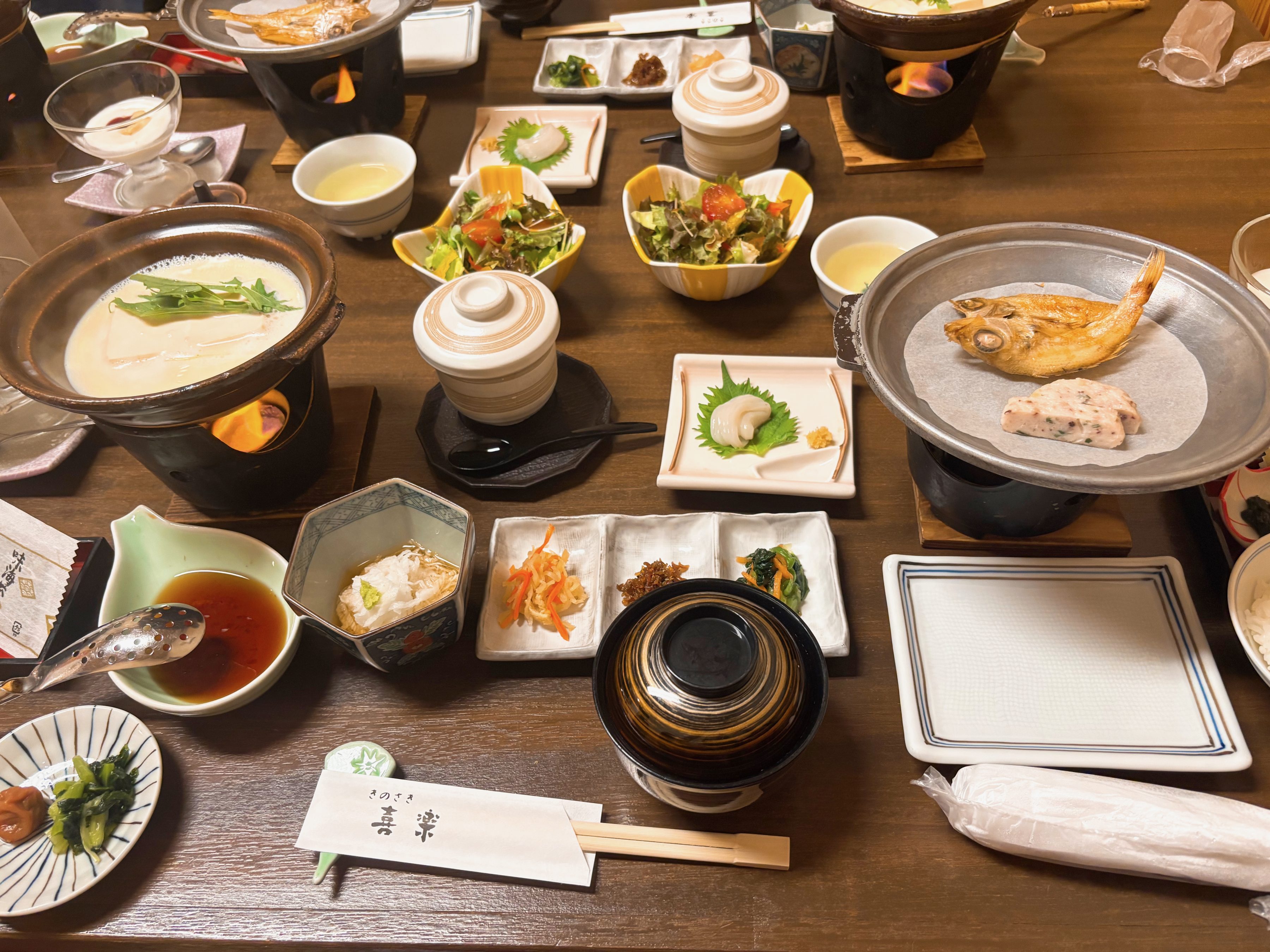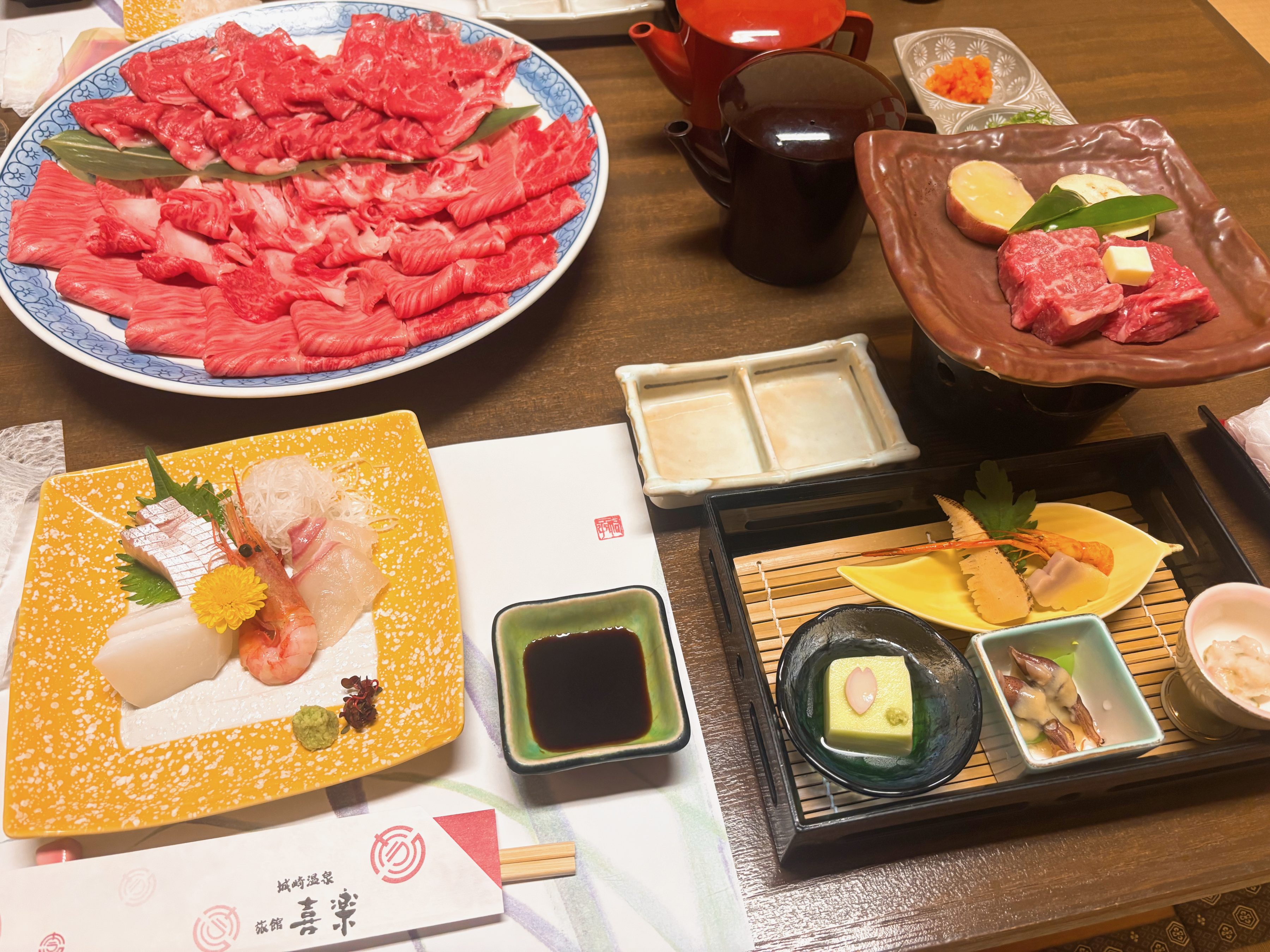 肉は但馬牛。しゃぶしゃぶにしていただいたのだが、筋がなくするっと嚙み切れて非常に美味だった。刺身も新鮮でぷりぷりである。私は近年貧乏症をこじらせて日々の食事量を減らしていたためか、それとも単に加齢のためか、食える量が減ってきている。後で火がつけられたステーキの方の肉に手を付けるころにはまあまあ満腹だったのだが、もう一つ幼少の頃からこじらせている勿体無い症が発症し、自分の皿を平らげてなお、しゃぶしゃぶ鍋を、もう、はちきれるくらい詰めこんでしまった。腹痛になった。鍋は完食出来なかった。